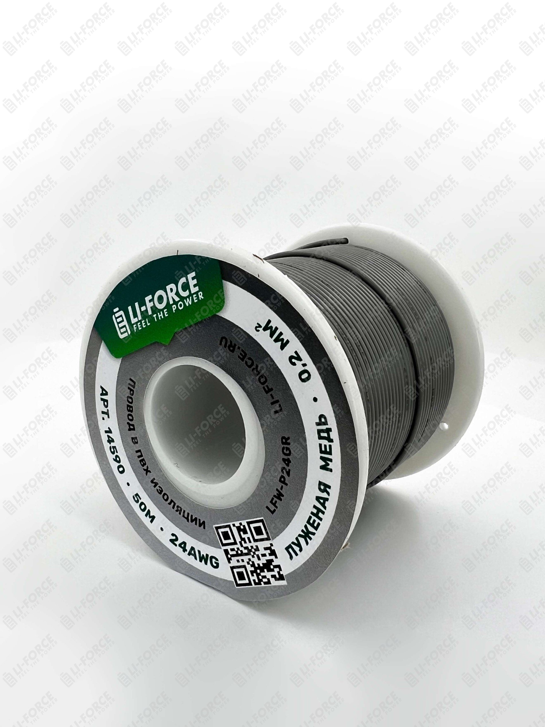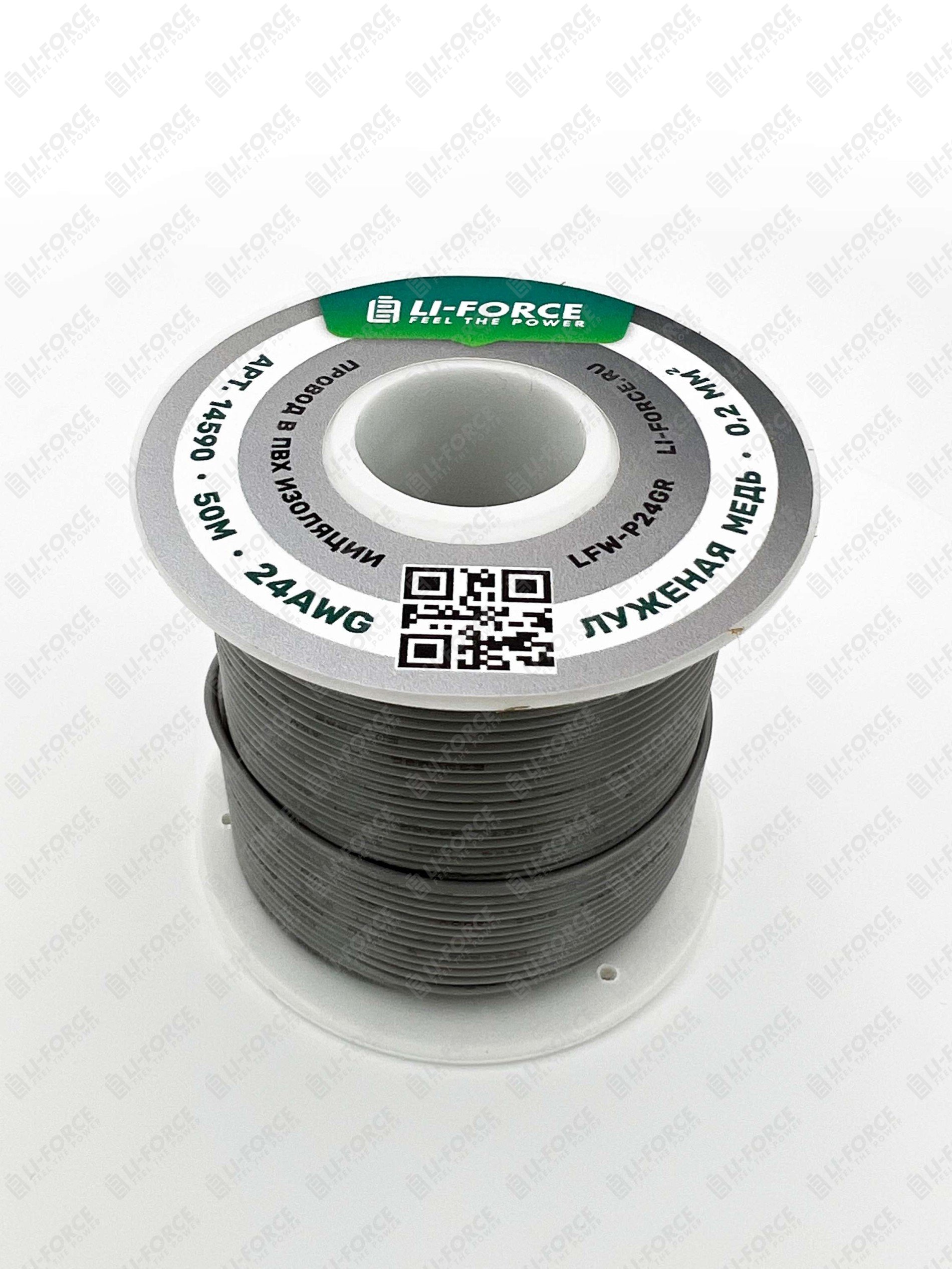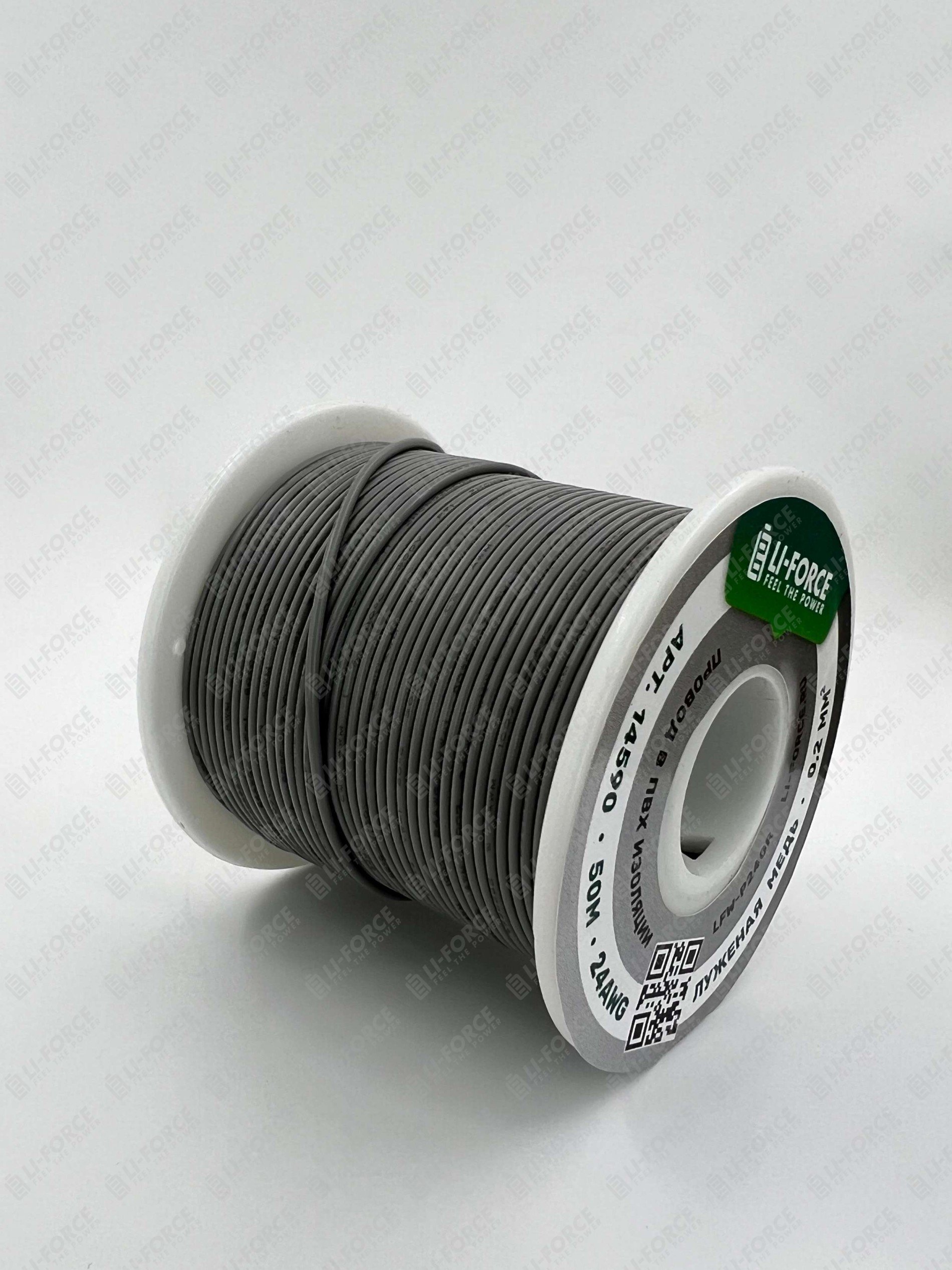 24AWG 50м ПВХ медный провод 0.2 мм² на катушке (серый, UL-1007) LFW-P24Gr