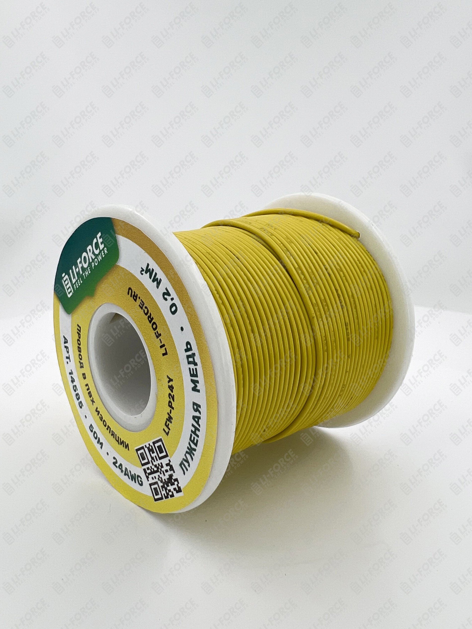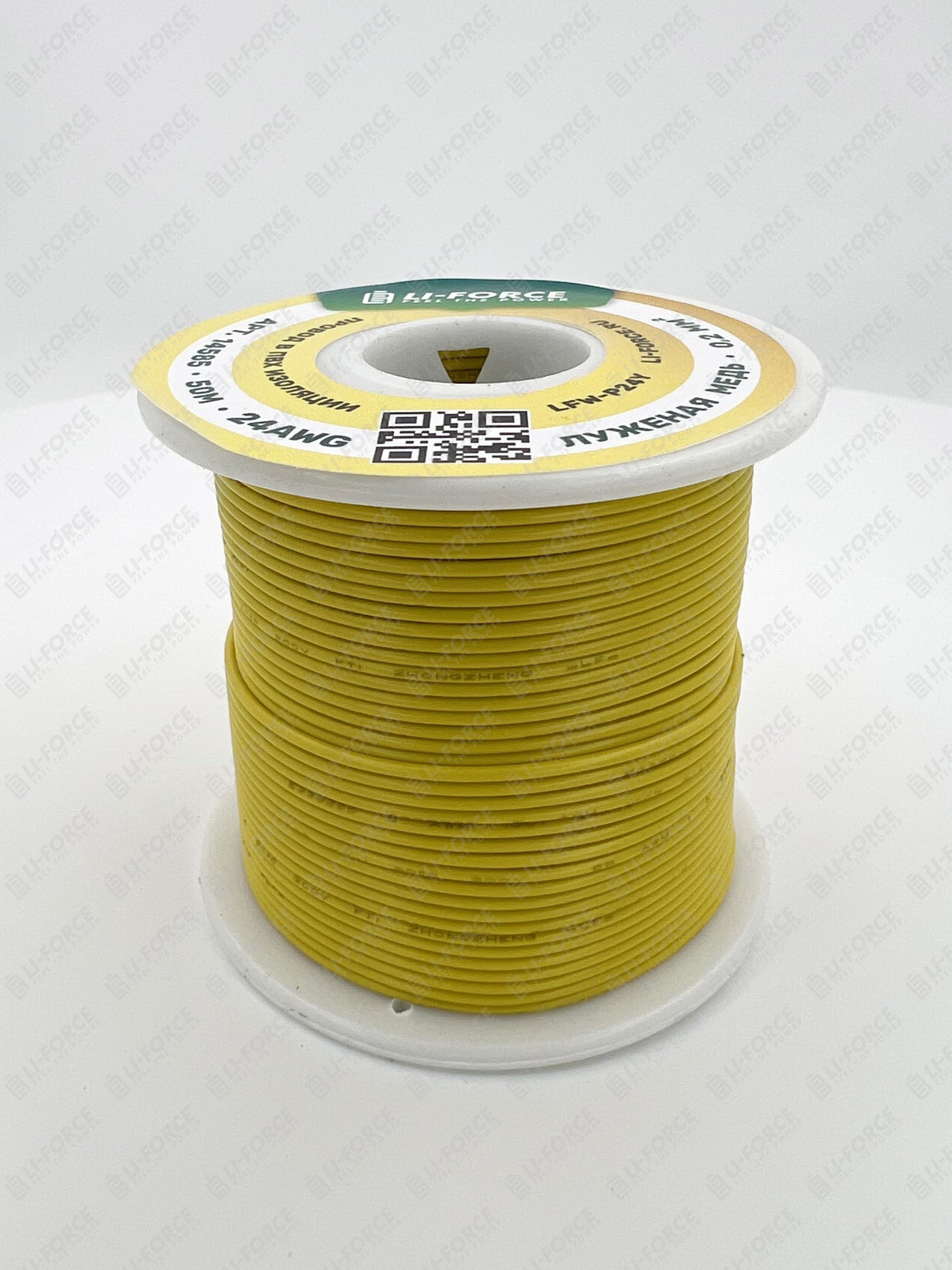 24AWG 50м ПВХ медный провод 0.2 мм² на катушке (желтый, UL-1007) LFW-P24Y
